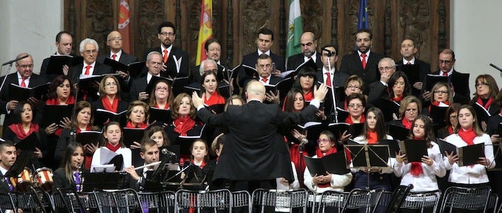 El auditorio del centro cultural Hospital de Santiago acogió este sábado un Concierto de Navidad basado en algo tan tradicional de estas fechas como son los villancicos y en el que participaron un total de seis formaciones, todo ello bajo la dirección de Sebastián Quirós e Isabelina Cejudo.