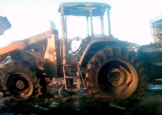 Un tractor en llamas junto al acceso a Úbeda por el polígono industrial
