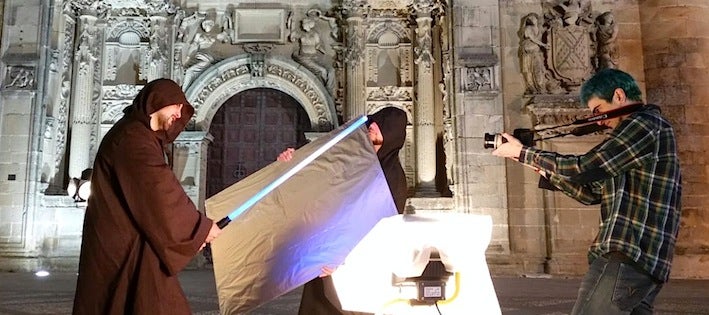 Varios personajes de 'Star Wars', algunos incluso empuñando sus características espadas láser, se pasearon en días pasados por diversos rincones de Úbeda sorprendiendo a todos los que se cruzaron con ellos. ¿El motivo? Se trató de la grabación de una especie de tráiler o avance del Cinefan Festival que se quiere presentar en unas semanas en la Feria Internacional de Turismo (Fitur 2015) y, a partir de ahí, moverlo por internet para dar algunas pistas sobre la que será la tercera edición de este evento dedicado a las grandes sagas cinematográficas. En un año, además, en el que el universo 'Star Wars' tendrá una gran resonancia a todos los niveles pues se prevé el estreno de un nuevo episodio de la que quizá sea la saga más famosa de la historia del cine.