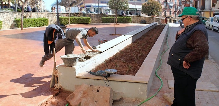 Jiménez destacó que se está construyendo una gran jardinera con respaldo para que los padres y abuelos que acuden con los menores a este recinto puedan sentarse. Y añadió la instalación de nuevos juegos infantiles. Además, se ha sustituido el suelo de 'chinas', «que cuando llovía acababan en las calles cercanas», por un suelo de hormigón impreso.