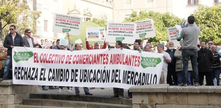 Manifestación de los vendedores del mercadillo contra su traslado al ferial