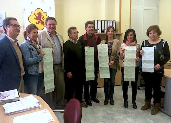 Entrega de los cheques de 'El empujón de Alciser' que han quedado repartidos en 43 establecimientos