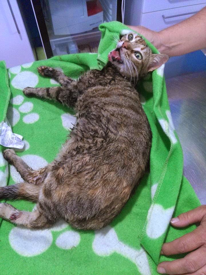La gata fue llevada a una clínica de confianza de Felicán, situada en la vecina localidad de Torreperogil. Llegó muy grave, con diversos traumatismos, y ... no pudo recuperarse, falleciendo dos días más tarde.