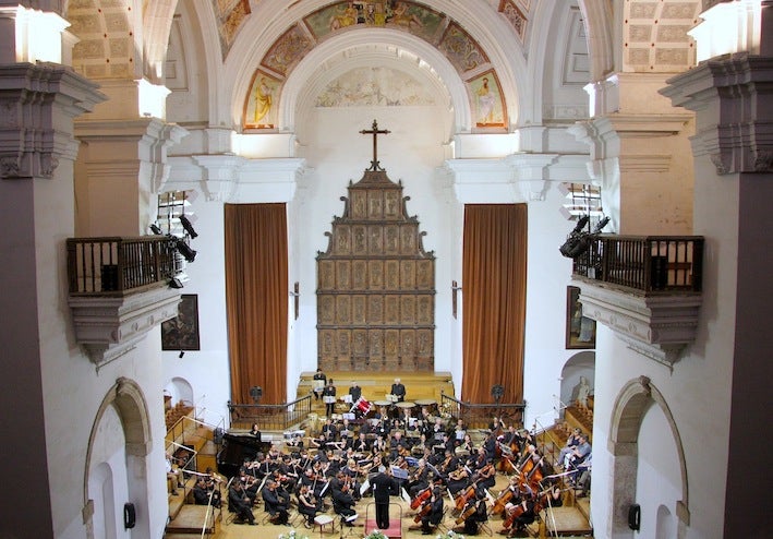 Como solista, a la guitarra, estuvo Joaquín Clerch, catedrático en la Universidad de Música Robert Schumann de Düsseldorf, quien mostró su nivel como compositor e intérprete cuando sonó su 'Concierto de Cáceres para guitarra y orquesta'.