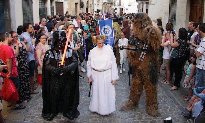El malvado Darth Vader escoltado por sus soldados junto a otros personajes de 'Star Wars' como un impresionante Chewbacca o la princesa Leia, a los ... que dieron vida los fans de 'La guerra de las galaxias', fueron los más demandados por quienes abarrotaban el entorno a la hora de fotografiarse y tener un recuerdo de este pasaje de la ciencia ficción. Fue así gracias a lo bien conseguidas que estuvieron las indumentarias que lucieron estas personas pertenecientes en su mayoría a dos colectivos que recrean el universo de la famosa saga de George Lucas. Se trata de 'Star Wars Holored Estelar' de Sevilla y 'Pelotón Biker Scout' de Úbeda.