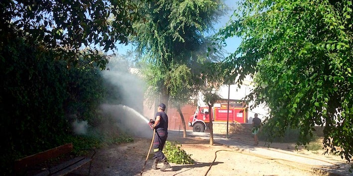 Los Bomberos de Úbeda tuvieron que intervenir en la mañana de este sábado para apagar un incendio registrado en el solar de la antigua fábrica de aceite de la familia Gassó, situado junto a la calle Ariza. A las diez menos cuarto se recibía la llamada desde el Servicio de Emergencias 112 alertando sobre un fuego en una parcela con abundante broza y pasto que afectaba también a un punto del parque anexo. Personados rápidamente en el lugar, los efectivos lograron sofocar las llamas y se dedicaron a refrescar la zona para evitar que se reavivaran.