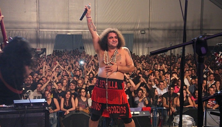 Fue aparecer el 'Sevilla' (Miguel Ángel Rodríguez) en el escenario y cientos de brazos y voces ya le saludaban haciéndole gestos y gritando su nombre. ... A partir de ahí la música inundó la caseta y también las carcajadas, tanto por las letras de las canciones como por los continuos gags y comentarios (casi monólogos) de este personaje de la escena musical española convertido en uno de los 'showman' más queridos del país.
