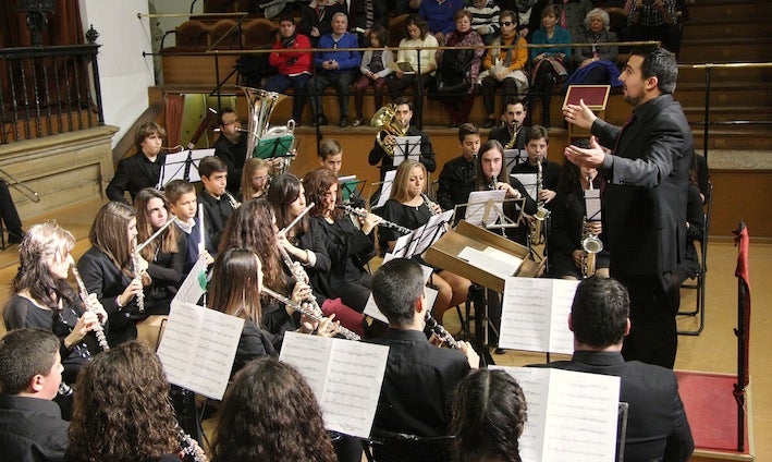 La primera parte estuvo protagonizada por la banda joven de la Agrupación Musical Ubetense que, bajo la dirección de Cristóbal López Gándara, interpretó 'Otoño porteño' de Piazzolla, 'Granada' de Albéniz y 'Entre naranjos y olivos' del propio director.