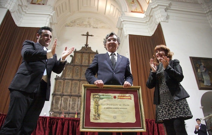 El historiador del arte, profesor de universidad y novelista ubetense, Arsenio Moreno Mendoza, que fue alcalde de la localidad entre 1983 y 1987, fue proclamado anoche Hijo Predilecto de Úbeda como reconocimiento de la ciudad a quien, de manera sobresaliente, tanto ha aportado al municipio. Recibió el nombramiento de manos de la alcaldesa, Antonia Olivares, en el transcurso del acto institucional desarrollado por el Ayuntamiento con motivo del aniversario de la Constitución Española.