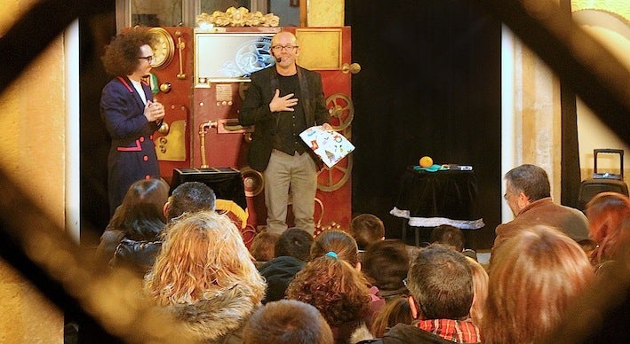 Por un lado, en la tarde del sábado tuvo lugar en el patio central el espectáculo 'La máquina' a cargo de la compañía Yera Teatro, ... con el mago Lapsus y su ayudante Chispita. Ambos hicieron pasar un buen rato a todos los presentes a base de grandes dosis de ilusionismo y situaciones cómicas, hilando una historia que giró en torno a un encargo muy especial de un museo.