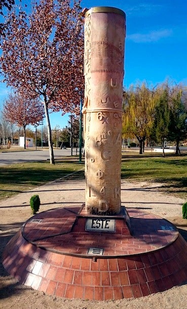 La escultura entra además en contacto con los conceptos de tiempo y espacio, pues funciona como reloj de sol al proyectar su sombra sobre una base en la que también están marcados los cuatro puntos cardinales.
