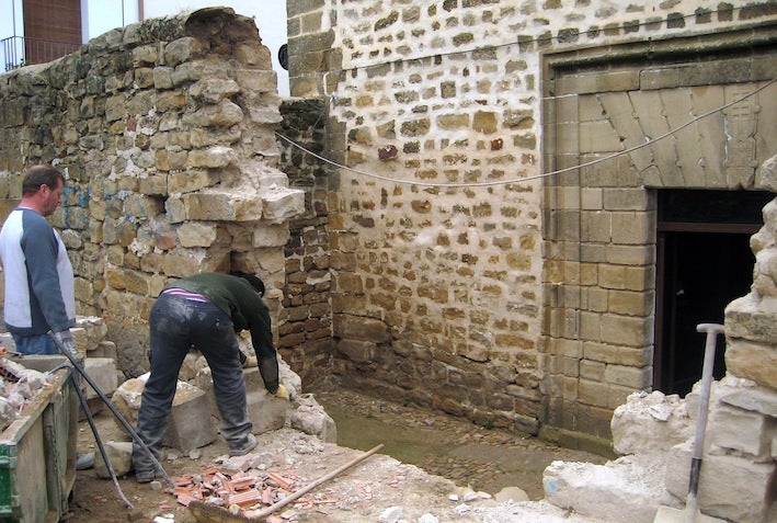 Una vez recibidos los permisos oportunos, las obras comenzaron en días pasados, demoliéndose el sector del muro situado ante la citada puerta, donde se pondrá ... una reja artesanal de 3,5 metros de largo por 2,2 metros de alto que ha sido realizada por el taller de forja Tiznajo, también del mismo barrio. Una intervención que permitirá la visualización en los dos sentidos. Es decir, que desde fuera se podrá apreciar la portada posterior que se abrió y su peculiar dintel que estaba oculto, así como una perspectiva de la profundidad del interior de la iglesia porque la puerta se hizo con hojas abatibles de cristal, y desde dentro se apreciará el mirador, la fuente y, al fondo, el paisaje de pinos de la Cava.