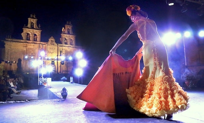 Los monumentos de la plaza Vázquez de Molina, auténtico emblema de la declaración de Úbeda como Patrimonio de la Humanidad, sirvieron de escenario para 'Incienso y volantes', desfile de moda flamenca organizado a beneficio de la vocalía de caridad de la Cofradía de Nuestro Señor de la Oración en el Huerto y Nuestra Señora de la Esperanza de Úbeda.