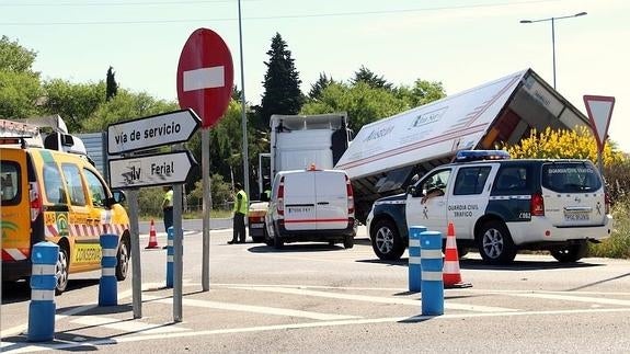 Los hechos han ocurrido cerca de las diez y media de la mañana cuando, al tomar la rotonda, el remolque del camión se ha desplazado hacia la cuneta