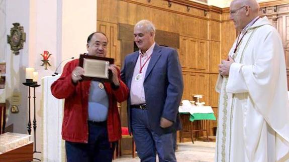 El grupo parroquial entregó una placa a Eduardo Jiménez Torres por tanto años al frente de la hermandad y por su labor para recuperar los cultos en honor del patrón