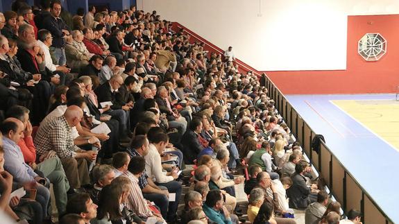 Entre las dos gradas abarrotadas del polideportivo, en la pista y junto a los integrantes de la rectora y demás intervinientes, estuvo quien ha sido el presidente de la cooperativa durante años hasta que fue destituido el pasado mes de agosto. En un momento de la asamblea intentó intervenir, según dijo, para presentar una propuesta de solución, pero no se le permitió hacerlo.