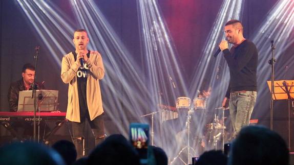 Manuel González y Yerai Blanco presentaron en directo su nuevo disco 'Tras la máscara', un trabajo más personal en el que mezclan flamenco y pop con sones carnavaleros a ritmo de tres por cuatro. Lo hicieron en formato acústico, acompañados de piano, bajo y batería, logrando así un ambiente algo más intimista.