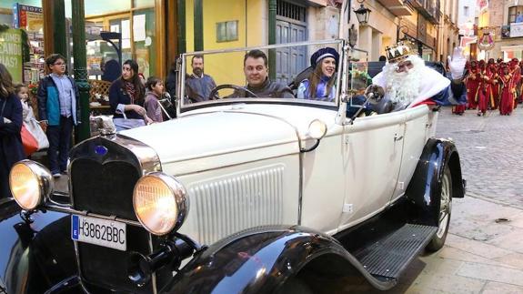 Respecto a la tarde, las bandas de pajes reales recorrieron diferentes itinerarios hasta confluir en el Hospital de Santiago, donde recogieron a Melchor, Gaspar y Baltasar que esperaban montados en coches antiguos, para acompañarlos hasta el Ayuntamiento donde les aguardaban sus carrozas para iniciar la cabalgata.
