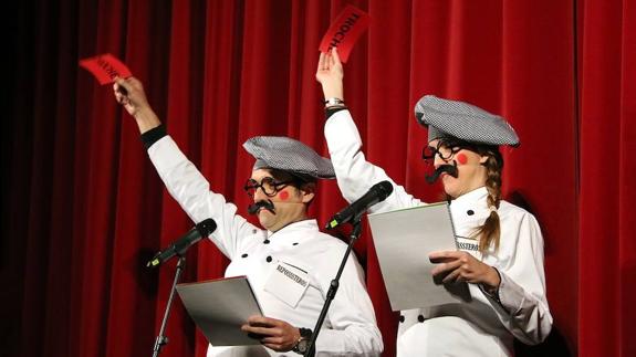Hechas las presentaciones, fue el turno de Curro y Pepe Navarrete, que convirtieron el escenario del Ideal Cinema en una antigua redacción de periódico de los años 30 (del 33 para ser más exactos). El primero, en el papel de director, y el segundo, como becario, hilaron una particular crónica sobre el Carnaval ubetense, centrándose en su particular Carnaval, el que ellos viven todos los años junto a sus numerosos figurantes, amigos y grupos afines. No faltaron alusiones a agrupaciones y a personas conocidas en los ambientes carnavaleros. Y de camino, tratándose de la recreación de una escena periodística, sacaron a relucir muchos asuntos relacionados con la actualidad local.