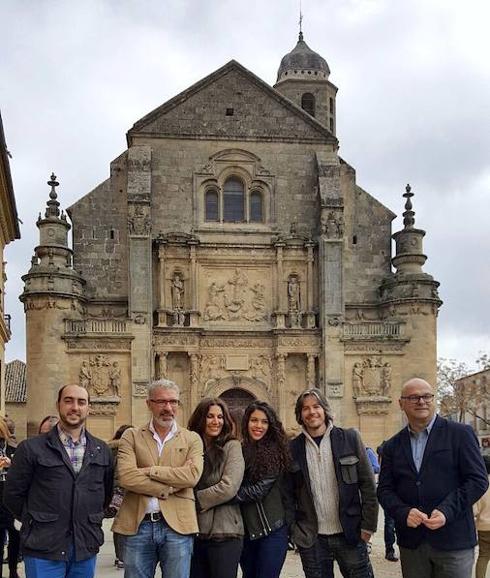 La monumental plaza Vázquez de Molina de Úbeda recibió este domingo a algunos integrantes del equipo de la serie 'Entreolivos', nueva propuesta de ficción de ... Canal Sur Televisión que se estrenará este lunes, 27 de febrero, a las diez de la noche. Para promocionar su llegada a la parrilla, se contó con la presencia de los protagonistas, Pastora Vega y Eduardo Velasco, y de otros intérpretes como María Ramos y el ubetense Nono Gándara, que en la emblemática plaza estuvieron repartiendo botellitas de aceite etiquetadas con el título de la serie. Les acompañador el diputado de Promoción y Turismo, Manuel Fernández Palomino, y el concejal de Agricultura del Ayuntamiento de Úbeda, Javier Gámez.