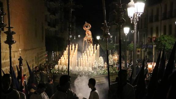A las nueve, desde la iglesia de la Santísima Trinidad, iniciaba su desfile la hermandad más joven de Úbeda, en el que fue su quinto paseo procesional tras su estreno hace ahora cuatro años, una vez que fue erigida oficialmente como cofradía el 18 de enero de 2012. La cofradía sigue creciendo poco a poco, tanto en detalles y enseres como en guión. Esta vez formaron el cortejo unos 70 nazarenos que, junto a costaleros y gente de apoyo, sumaron unas 120 personas, sin contar a la banda de acompañamiento.