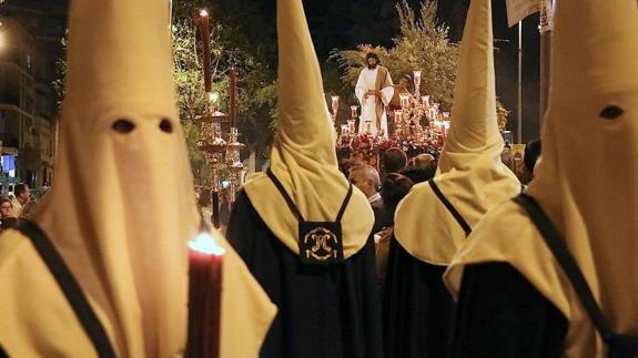 La Cofradía Eucarística de la Santa Cena y la Cofradía Sacramental y Hermandad Salesiana de Nuestro Señor Jesucristo en Su Prendimiento, María Santísima del Auxilio, San Juan Evangelista y San Juan Bosco procesionaron durante una apacible noche