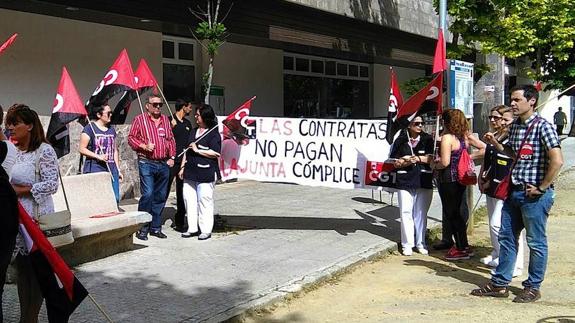 Ante ello, CGT convocó esta concentración «en defensa de los servicios públicos y de las trabajadoras que luchan y ponen en cuestión las vías de enriquecimiento de las empresas comisionistas y a los políticos sin escrúpulos a costa de la salud y el bienestar de la ciudadanía».