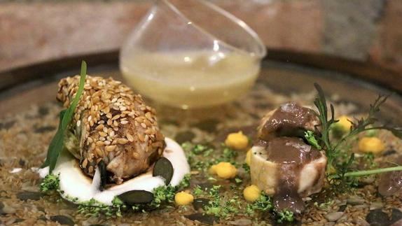 La Escuela de Hostelería de la Fundación Cruzcampo, en la Casería de las Palmeras, fue el escenario de la prueba semifinal en la que el jurado eligió a los cuatro finalistas. Alejo Pérez llamó la atención con un plato muy original tanto en concepto como en presentación: 'Perdiz en tres fases con su máximo aprovechamiento'. Una receta con la que pretendía incidir en las técnicas y sabores tradicionales, pero contextualizando la propuesta a las tendencias actuales, con su presentación, puesta en escena, etcétera.