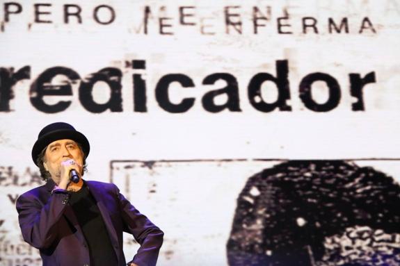 Las nuevas composiciones protagonizaron el arranque de la velada. Sonaron así la genial 'Lo niego todo', '¿Quién más, quién menos?', 'Postdata', 'No tan deprisa', '¿Qué estoy haciendo aquí?' o el himno 'Lágrimas de mármol' que dedicó a su familia allí presente (su hermano, sus sobrinos y los hijos de éstos). Y una vez hechas las presentaciones, 'aquí mi disco, aquí el público', tocó repasar canciones que han hecho de Joaquín Sabina un autor único.