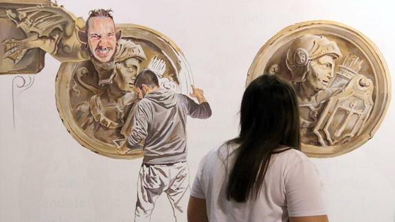 La exposición de fin de curso de los alumnos de la Escuela de Arte gira en torno a las gárgolas y tondos que se asoman al patio del monumental edificio en el que reciben sus clases