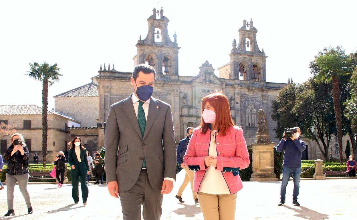 Antonia Olivares recibió a Juanma Moreno en la monumental plaza Vázquez de Molina, ante la Basílica Menor de Santa María de los Reales Alcázares, donde el presidente pudo apreciar en toda su grandeza y bajo un sol muy agradable, el principal enclave por el que Úbeda es Patrimonio Mundial junto a Baeza. En la puerta del Ayuntamiento le esperaban además los portavoces de la corporación municipal, Francisco Javier Lozano del grupo socialista y Gerardo Ruiz del Moral del grupo popular, con los que conversó un momento.