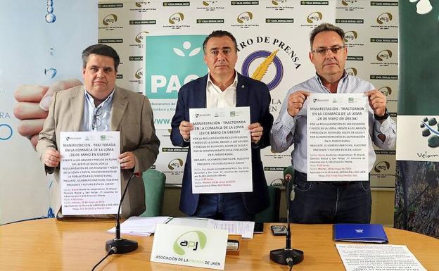La manifestación-tractorada fue presentada en rueda de prensa por el vicepresidente de AproJaén-Areda, Agustín Rodríguez; el presidente de PAG Jaén, Santiago Bañón; y Santiago García como miembro de la junta directiva de AproJaén-Areda.