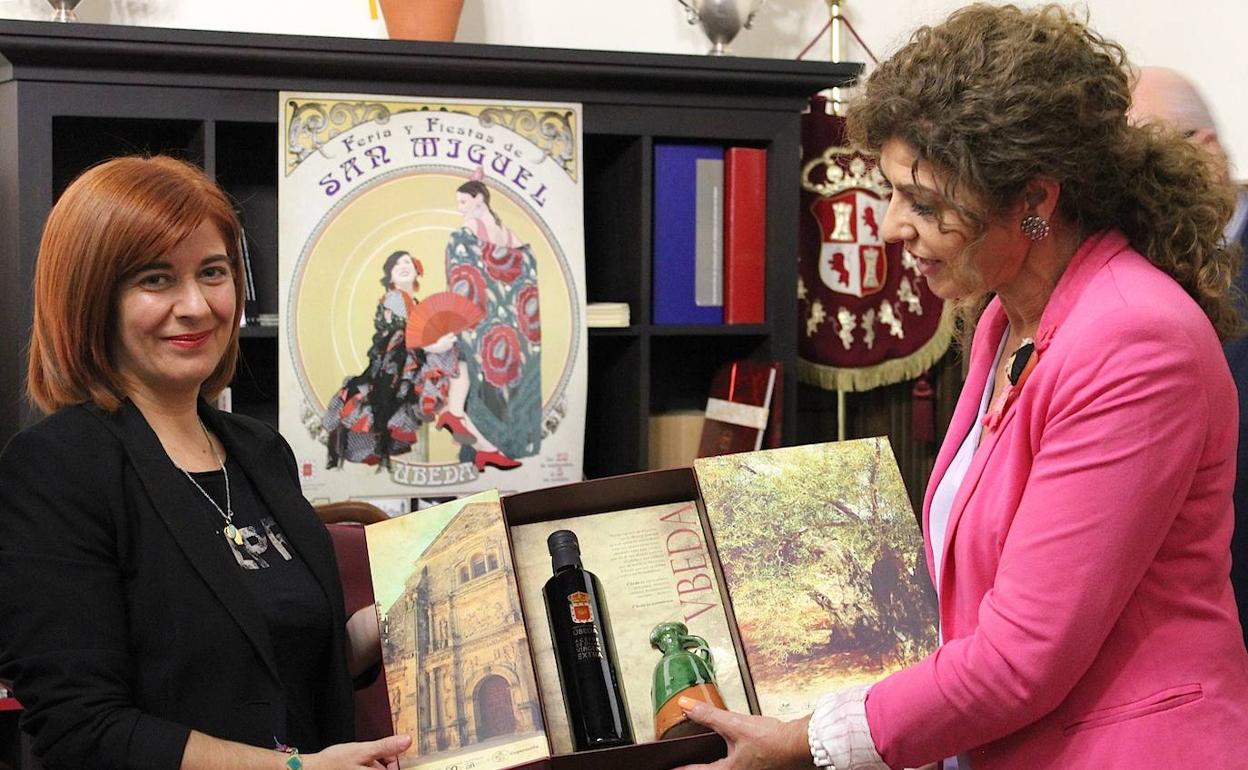 Como obsequio, la pregonera recibió una copia de los fueros de la ciudad y el estuche que el Consistorio utiliza como regalo institucional, que contiene, con una presentación de lujo, aceite y cerámica ubetense.