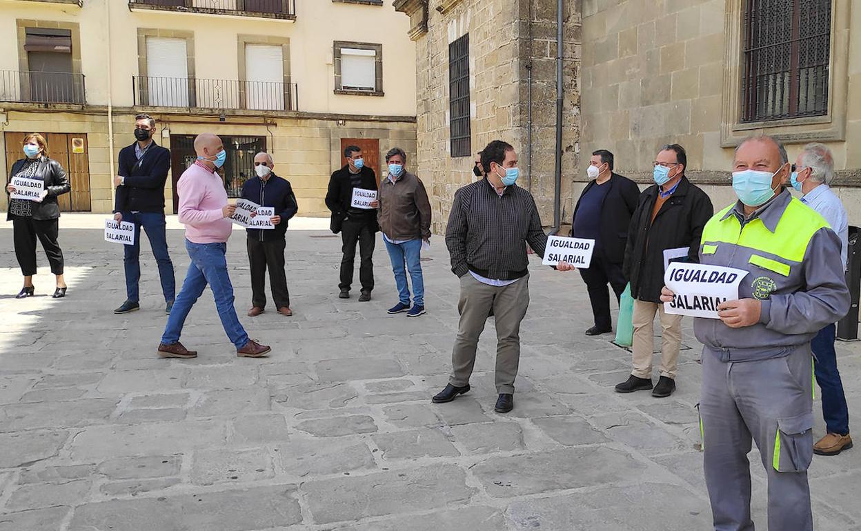 Con una concentración y carteles en las oficinas municipales piden que se cumpla lo acordado en 2018 y el abono de los atrasos generados