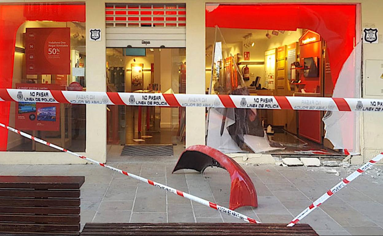 De madrugada, cuatro encapuchados estamparon un coche sustraído contra el escaparate y en cuestión de minutos se llevaron numerosos dispositivos móviles y otros aparatos electrónicos