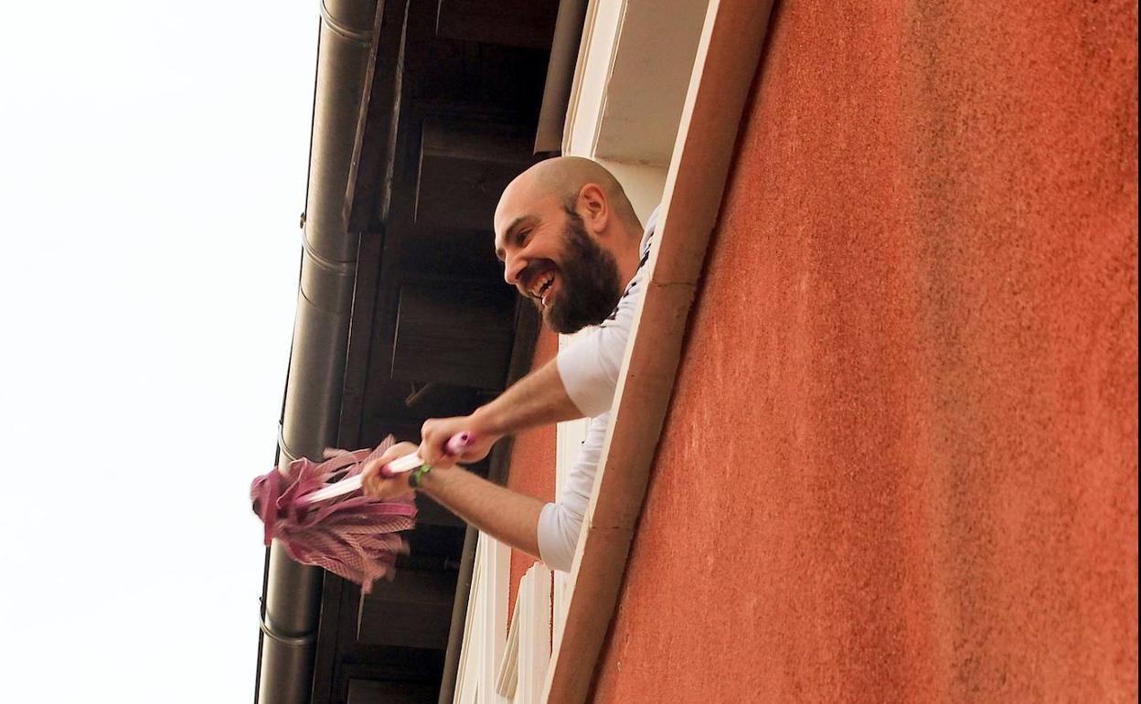 Asomado a una ventana de la calle Amparo, el de Úbeda es el promotor de la ya denominada 'fregonada de Lavapiés', curiosa iniciativa con la que los vecinos, tras los aplausos de rigor de las ocho de la tarde, asoman y agitan sus fregonas como queriendo limpiar Madrid (y todo el planeta) de este dichoso coronavirus. Un gesto, original cuando menos, que se ha convertido en símbolo de unidad de la vecindad, un grito al buen rollo y a la esperanza que, de entrada, les hace pasar a todos un rato divertido.
