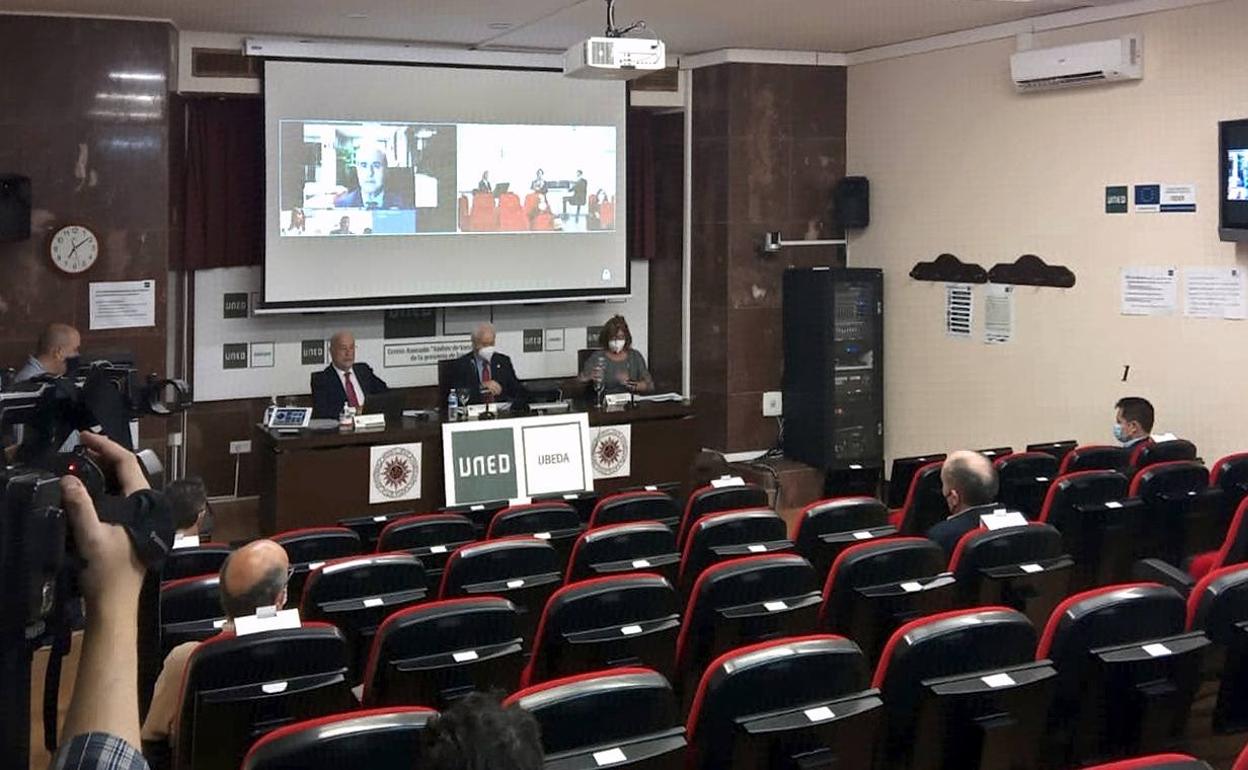 Por motivos de seguridad, y en cumplimiento de la normativa vigente contra la pandemia de la Covid-19, estuvieron presentes en el acto tanto la ponente como el director de la UNED en Jaén, Andrés Medina, así como su secretario, Joaquín Arias; mientras que intervinieron a través de videoconferencia el rector de la Universidad Nacional de Educación a Distancia, Ricardo Mairal, el presidente de la Diputación Provincial de Jaén, Francisco Reyes, y la alcaldesa de Úbeda, Antonia Olivares.
